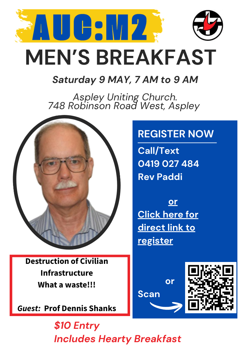 AUC:M2 (Aspley Men’s Ministry) invites you to our monthly breakfast and speaker event, held on the 2nd Saturday of every month.